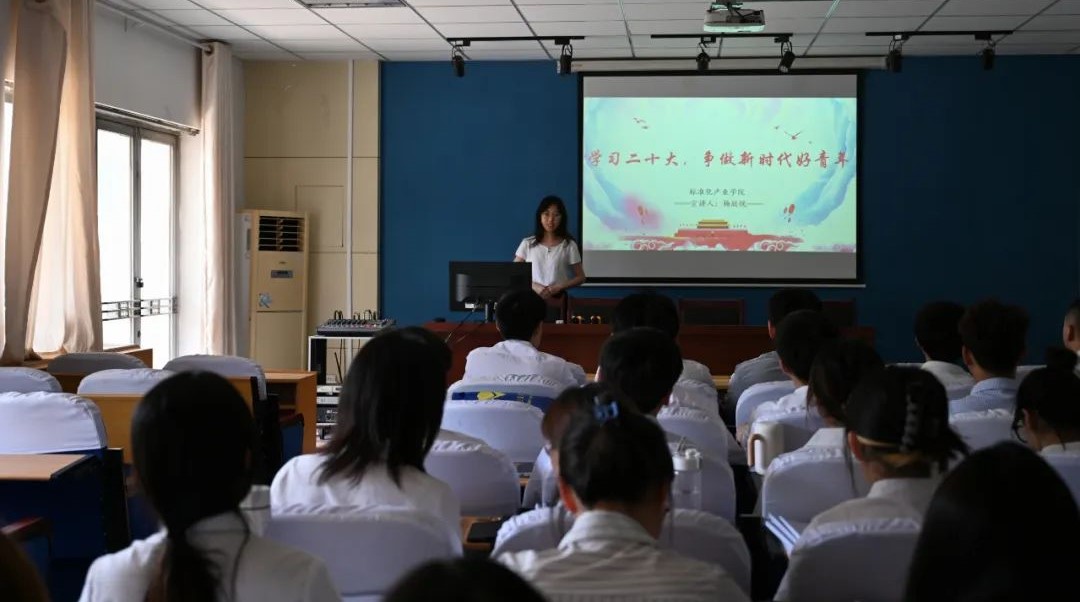集团老员工思政宣讲团成员杨欣悦同学为毕业生带来了一场 “学习二十大,争做新时代好青年”的主题宣讲,致敬英雄杨根思,回顾新中国发展的艰辛路程。宣讲让同学们燃起了投身于新时代发展的激情,同学们纷纷表示要向先烈功勋们学习,用自己的所学,为中华民族伟大复兴中国梦的实现贡献力量。