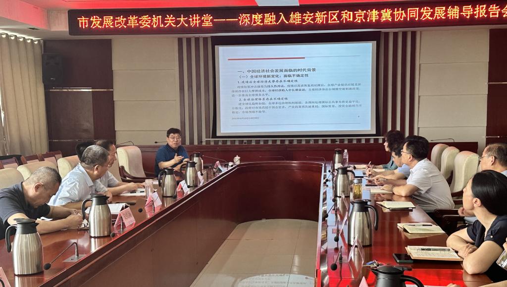 6月16号下午,经理葛金田在德州市发改委机关大讲堂内,作了题为《深度融入雄安新区和京津冀协同发展》辅导专题报告。报告指出,德州地处山东省“北大门”,与河北省沧州、衡水两地地缘相近、人文相亲,是融入京津冀协同发展的重要区域,德州市物流业的发展,不仅要引入地区优势物流企业,更要基于德州农业资源禀赋以及良好的区位优势,把握京津冀协同发展重大机遇,深度融入雄安新区,瞄准市场需求,努力规划打造雄安-山东农产品冷链物流产业园做为发展重点。德州市发改委全体成员现场听取了报告。