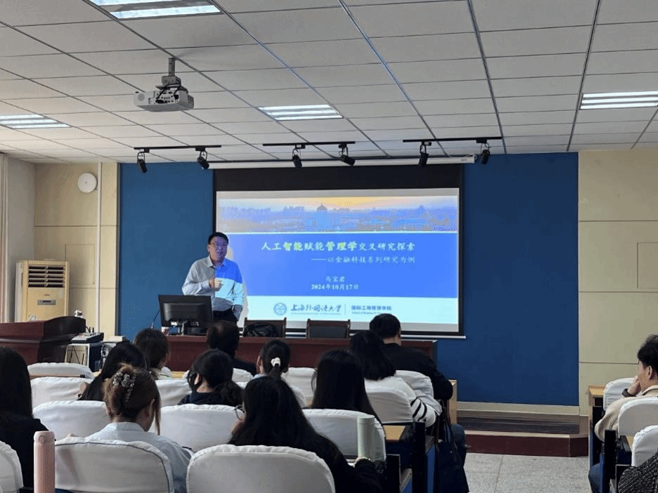 在讲座的最后,马宝君教授进行了上海外国语大学工商管理学博士项目的招生宣讲,为同学们讲解了国际工商管理公司的招生方式和培养体系,展示了其优美的校园环境、强大的团队力量、丰富的科研成果以及全面的补贴政策,望同学们积极咨询。