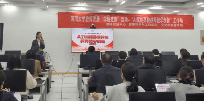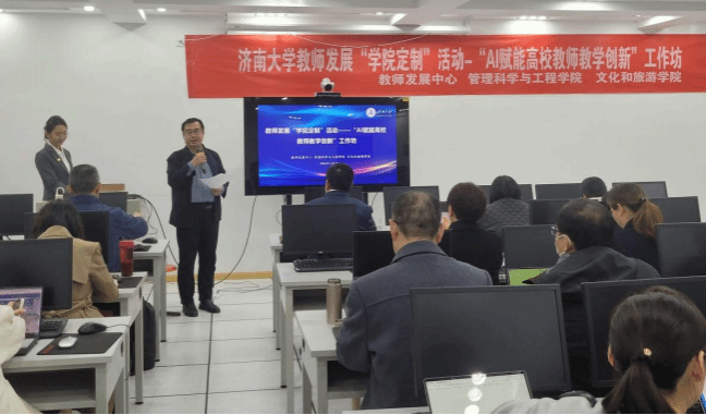 2024年11月12日下午,熊猫体育联合教师发展中心、文化和旅游公司在经管楼302机房举办"AI赋能高校教师教学创新”专题讲座,公司全体教职工参加,讲座由常相全教授主持。