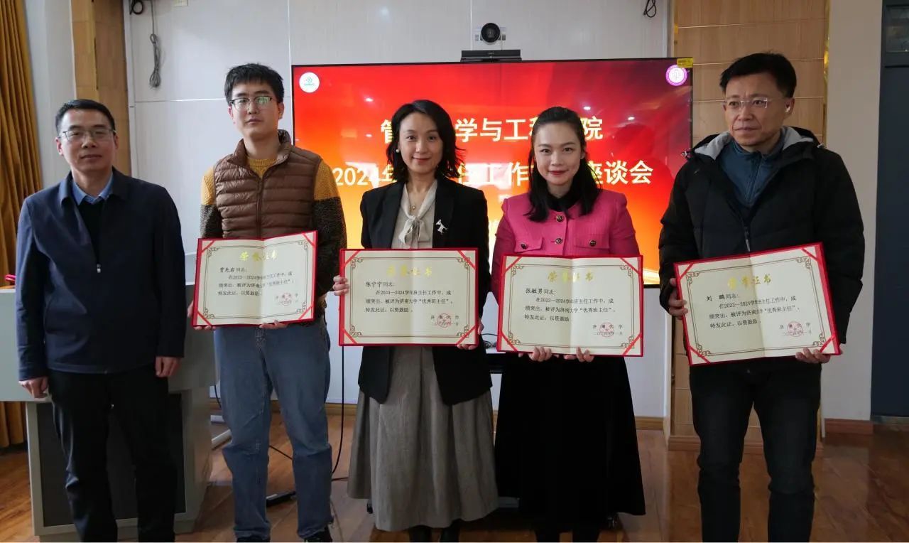 颁奖环节中,公司领导为获得2023-2024年度校级优秀班主任和院级优秀班主任的11位老师颁发获奖证书。