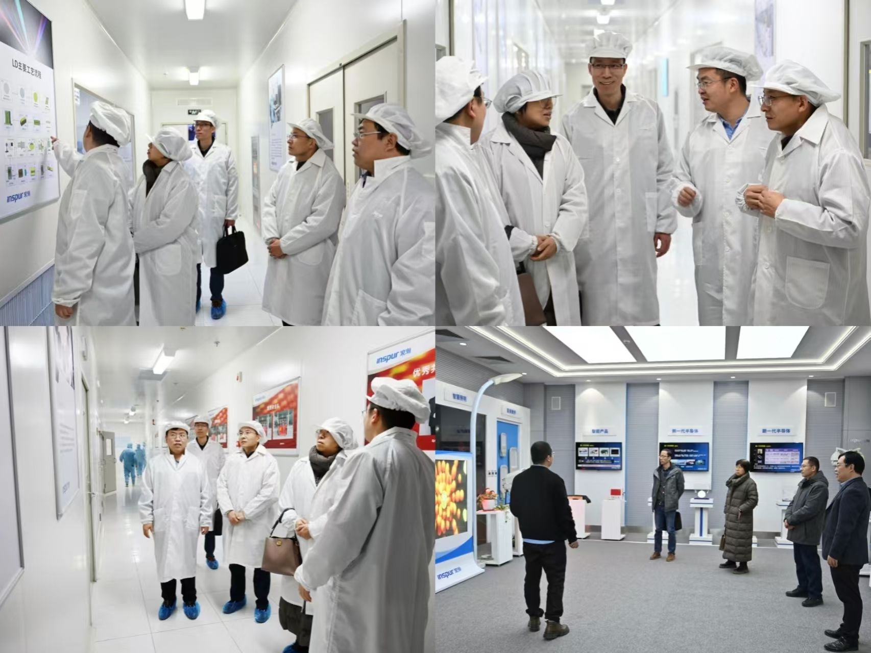 公司一行参观了浪潮华光国内领先的LED芯片车间一体化生产流水线、企业产品展厅和企业文化展厅,了解了公司20余年积累所形成的完整研发、生产、营销和安全保障体系。通过公司生产负责人的讲解,也深入了解到在新质生产力的大力助推下,企业在产业升级、技术革新、设备自主化和生产自动化建设中取得的显著成效,未来也将借助国内国际双循环市场东风,以更优质的产品和服务构建企业新发展格局。