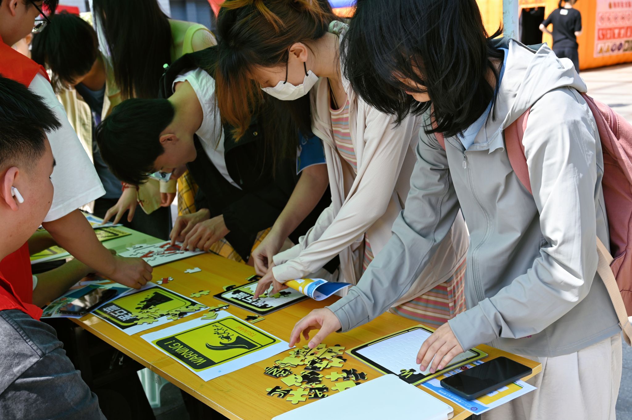 在经管楼广场前,益救应急协会精心设置救灾救援装备展示、场景应急模拟实训、智趣应急知识强化三大沉浸式教育展区。英雄山消防站指战员逐一讲解生命探测仪、液压破拆工具组等先进救援设备的功能与使用场景,员工们零距离观察装备细节,触摸钢铁救援利器,直观感受科技赋能救援的力量。场景应急模拟实训区通过灾害逃生模拟通道、灭火器材演练等设备,进行“应急避险-器材使用-协同救援”全流程演练,让参与者能够在近乎真实的灾害场景中学习应急避险技能,掌握正确逃生方法与自救互救要点。智趣应急知识强化区通过防灾减灾知识卡、安全标志拼图等趣味形式,引导师生辨识生活中常见的灾害隐患,实现防灾知识可视化、应急要领具象化。