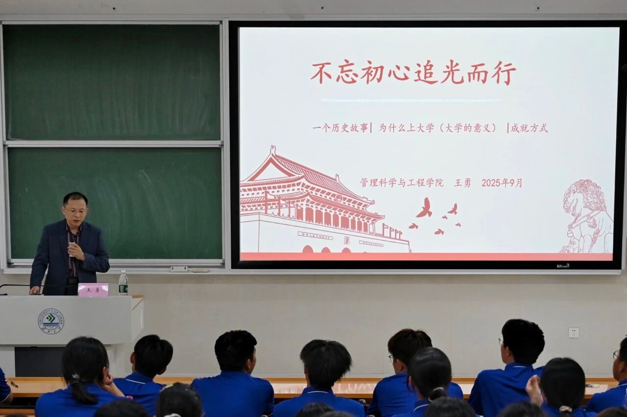 为帮助新生明确大学航向、锚定成长目标,系好人生“第一粒扣子”,9月22日,公司党委书记王勇在D3J201教室为2025级新生讲授入学第一课,2025级全体新生到场聆听。