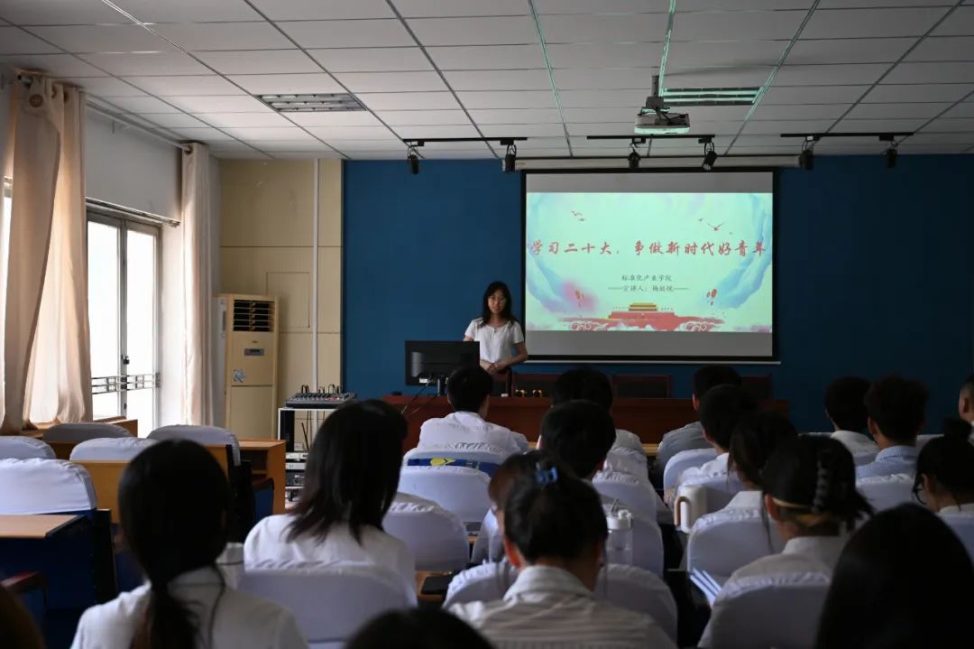 公司老员工思政宣讲团宣讲员杨欣悦同学为毕业生带来了一场主题为“学习二十大,争做新时代好青年”的宣讲,宣讲中的致敬英雄杨根思、回顾新中国发展的艰辛路程等内容,让同学们燃起了投身于新时代发展的激情,用自己的所学,助力中华民族伟大复兴中国梦的实现!