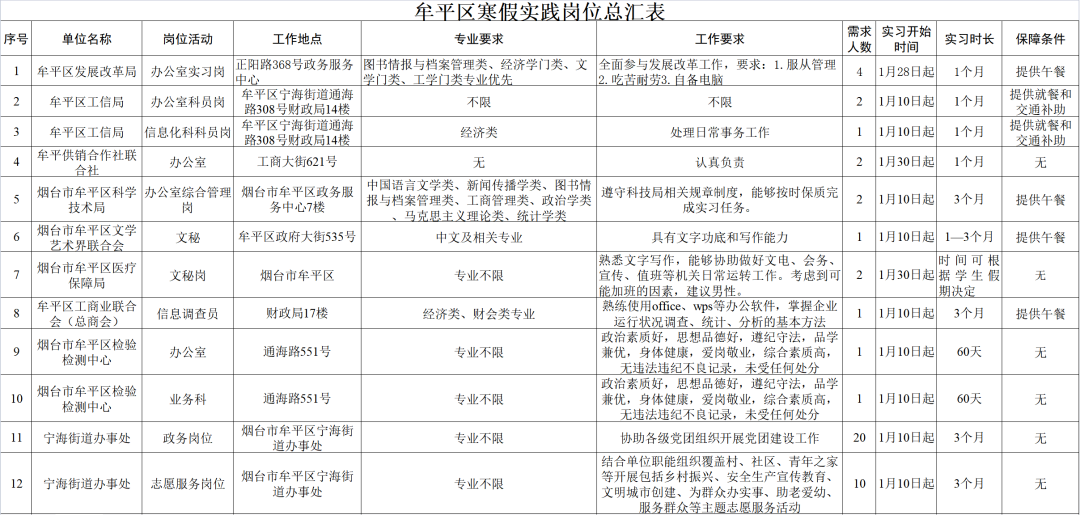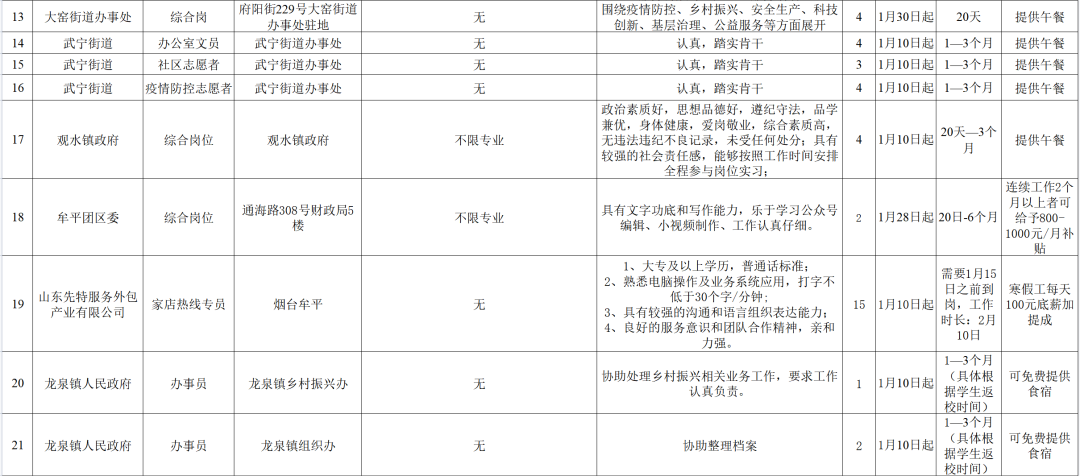 1.以牟平籍返乡老员工、驻烟高校优秀老员工为主;