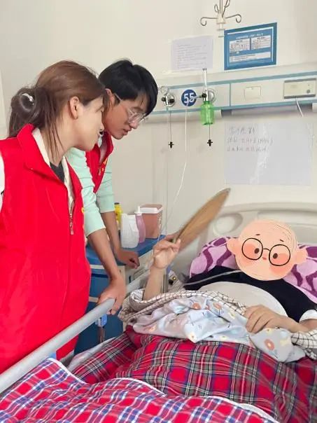 10月14日下午,志愿者们来到护理院老人休息居住的地方,大体了解老人情况后与老人们进行互动。