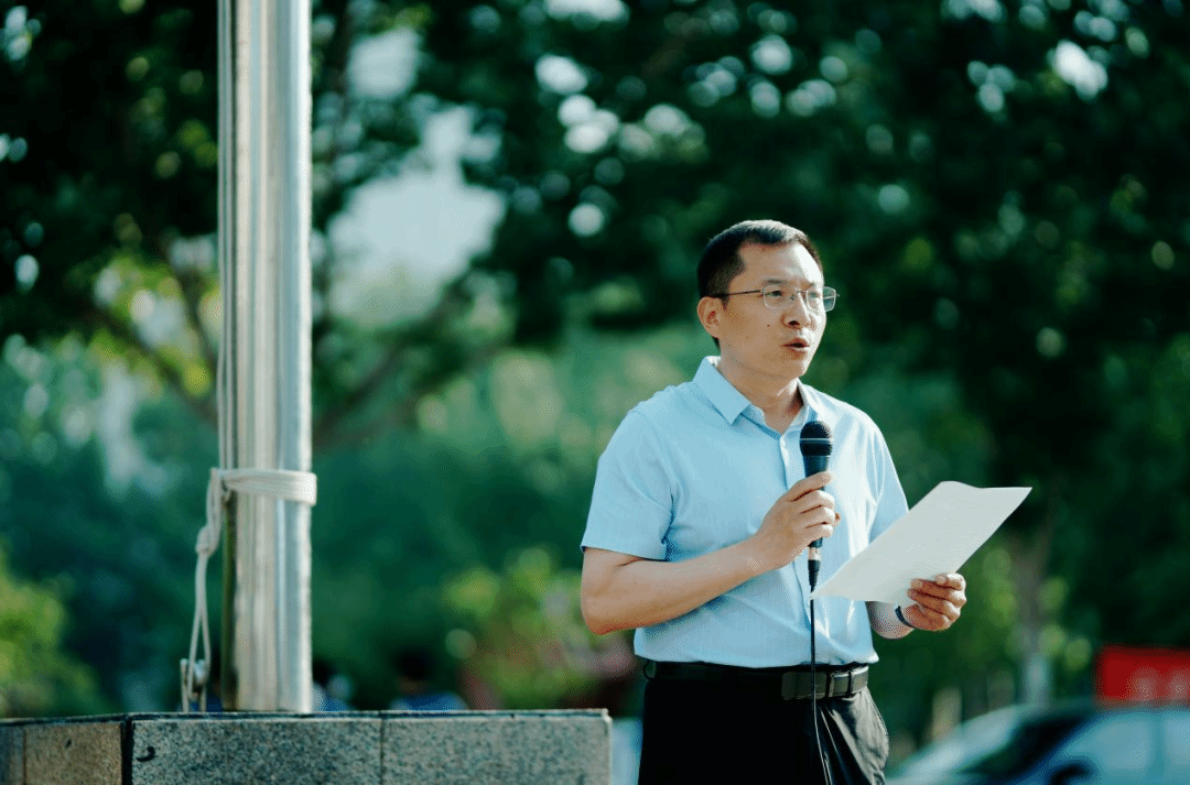 公司党委书记王勇在员工党员升旗仪式上发表讲话,他勉励同学们要奋发有为,肩负起历史重任,时刻保持清醒头脑,坚定信心决心,勇于担当作为。立长志、长努力,增强为国为民谋福祉的本领。以更加饱满的热情、更加坚定的信念、更加务实的作风,投身到伟大的时代潮流中去,为实现中华民族伟大复兴的中国梦贡献青春力量!